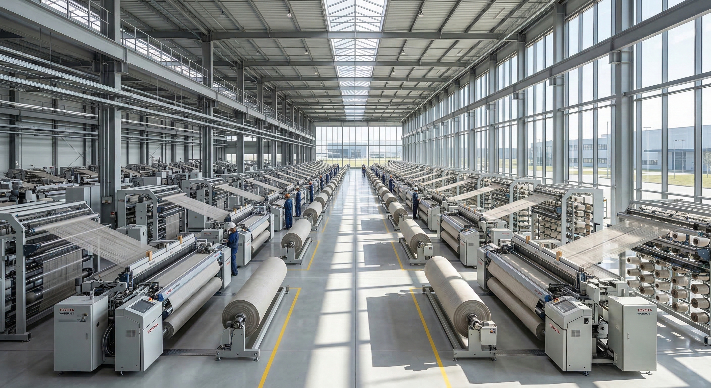Our waterjet looms use water as the weft carrier—a cleaner, more efficient weaving method that reduces resource waste.